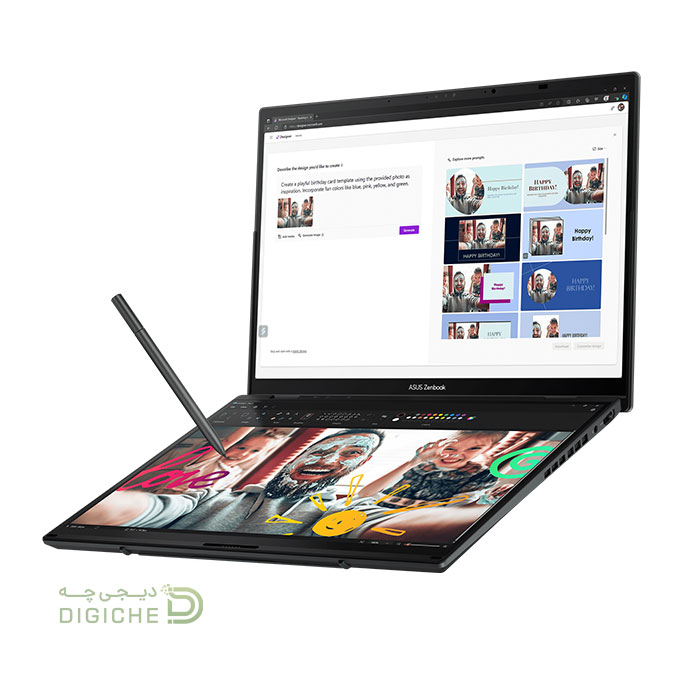 لپتاپ ASUS Zenbook DUO UX8406MA یک نوآوری جذاب در دنیای لپتاپها است که با طراحی دو صفحهنمایش، تجربه کاربری منحصربهفردی را ارائه میدهد. این دستگاه برای کاربرانی طراحی شده که به فضای کاری بیشتری نیاز دارند و میخواهند بهرهوری خود را به شکل چشمگیری افزایش دهند.